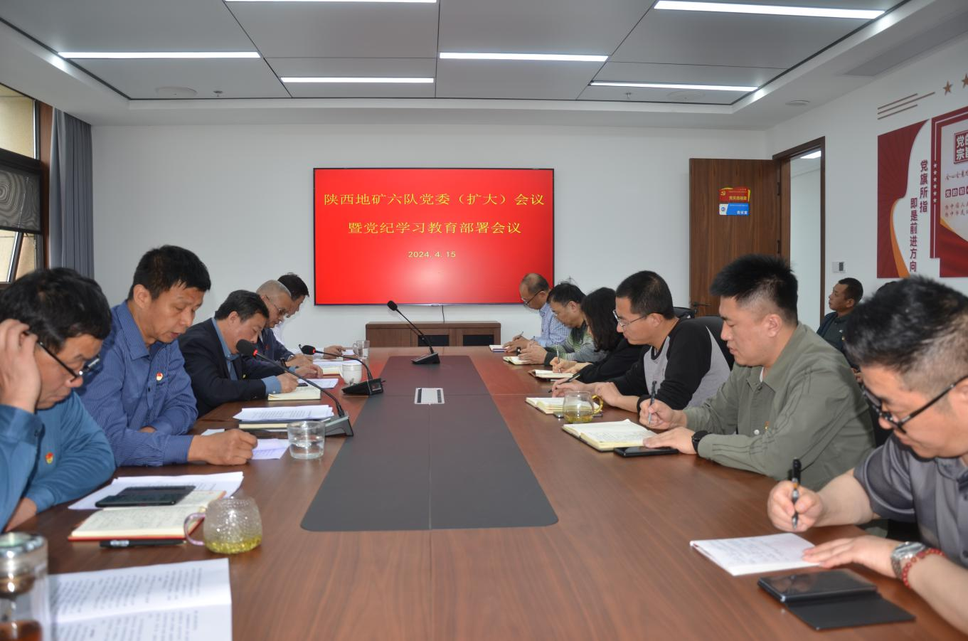 4月15日,陜西地礦六隊(duì)黨委召開黨委(擴(kuò)大)會議,部署開展黨紀(jì)學(xué)習(xí)教育工作。會上,認(rèn)真?zhèn)鬟_(dá)學(xué)習(xí)了中共中央辦公廳《關(guān)于在全黨開展黨紀(jì)學(xué)習(xí)教育的通知》和《關(guān)于在全省開展黨紀(jì)學(xué)習(xí)教育的實(shí)施方案》精神,公司黨委書記、執(zhí)行董事劉曉東作了動員報告。中層以上干部參加了會議。